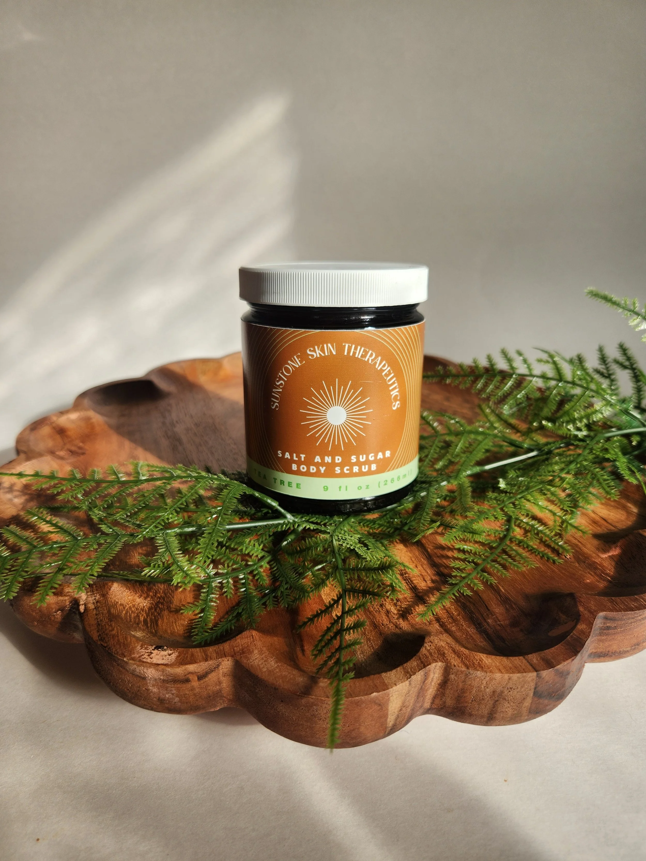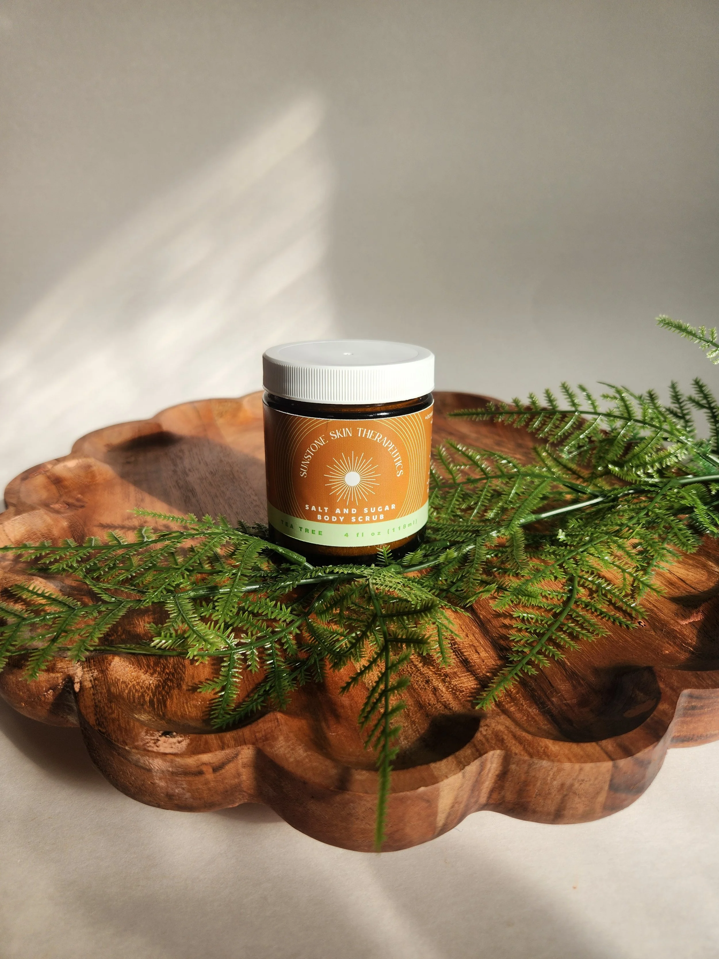 Ingredients: Sea Salt, Sugar, Grass Fed, Pasture Raised Beef Tallow, Tea Tree Oil